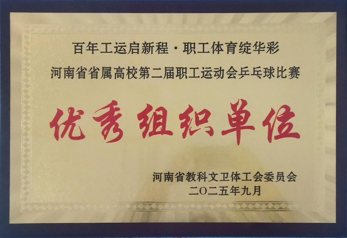 9月20日至21日,由河南省教科文卫体工会主办的河南省高校第二届职工运动会乒乓球比赛在黄淮学院举办。我校纪委书记、监察专员王红艳获得校级女子单打冠军,我校荣获“优秀组织单位”。